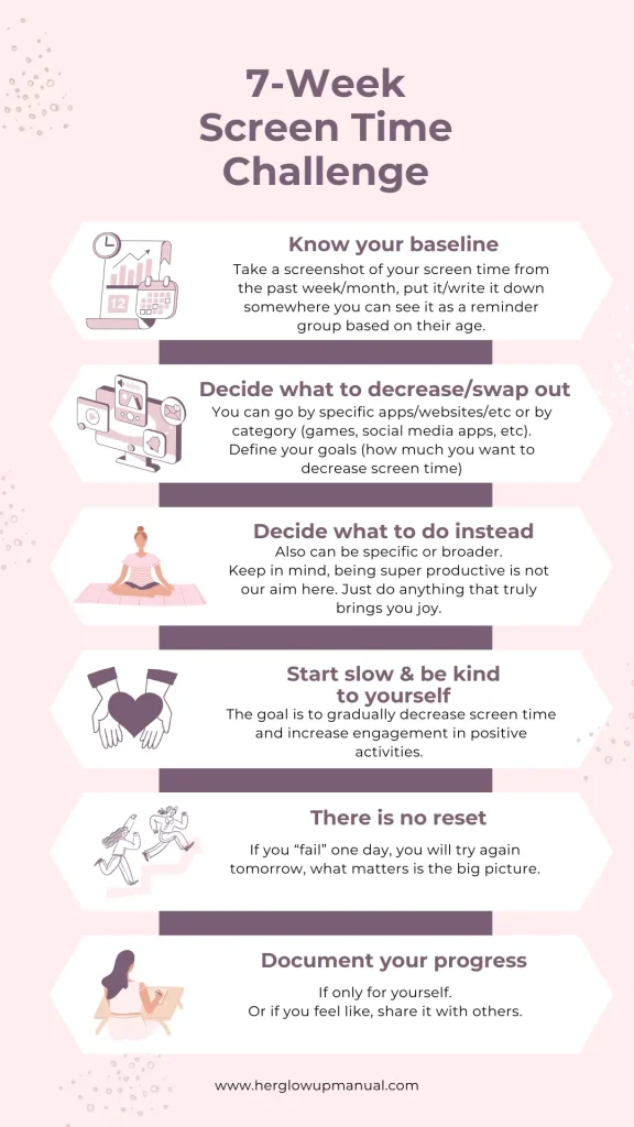 I wanted to share a challenge I came up with to cut down on my screen time and replace it with healthier, more meaningful activities.