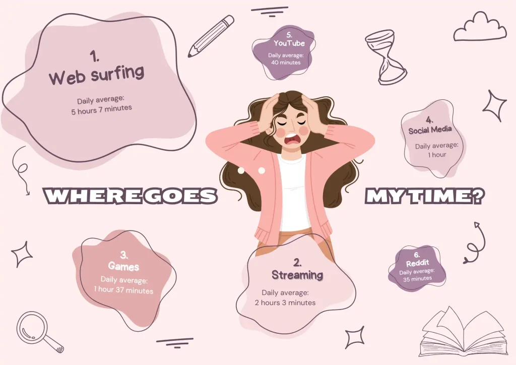 - Decide what to do instead: also can be specific (read a specific book, walk) or broader (start a new hobby, do any physical activity). Keep in mind, being super productive is not our aim here. Just do anything that truly brings you joy, but “never have the time for”.